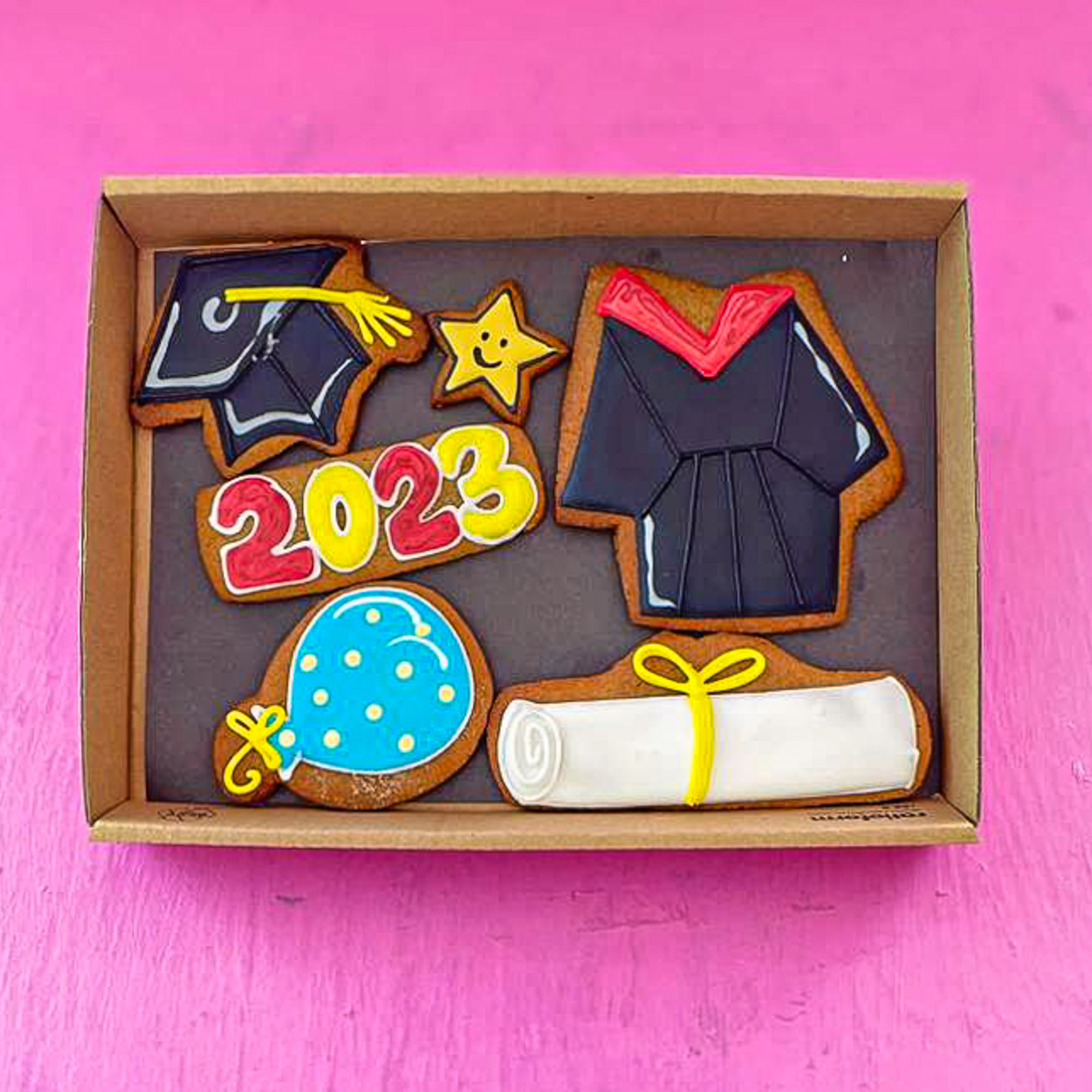 A set of six delicious iced biscuits in our bespoke biscuit boxes.